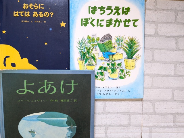 この日は7月7日だったので、1冊は迷いなく『おそらに はては あるの?』。理学博士(理論物理学)である佐治晴夫さんの文が例を取って分かりやすく、佐治さんの温かくて優しいまなざしが文体に表れている。伊沢洋二さんの絵はくっきりとして大きくて見やすい。